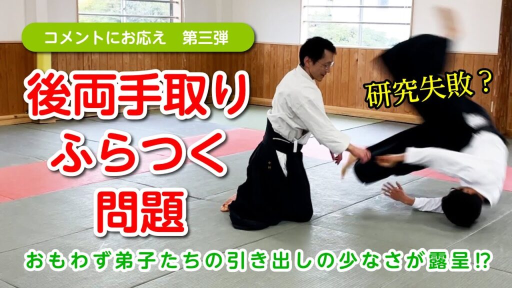 「後両手取りの時にふらついてしまう」というコメントをいただいたので、研究所(ラボ)として弟子で考察してみましたが…。 中村先生には、相手の引き倒しを膝行でついていくことで、下半身の居付きがなくなる感覚をつかむ稽古について解説いただきました... -